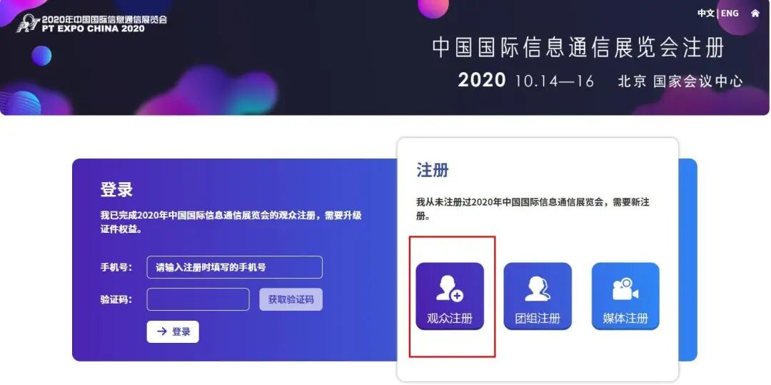 1.登录【中国国际信息通信展览会官网https://7e.7-event.cn/d/ci/7e/Reg/login/PT?trace_code=PTweb】进行注册。