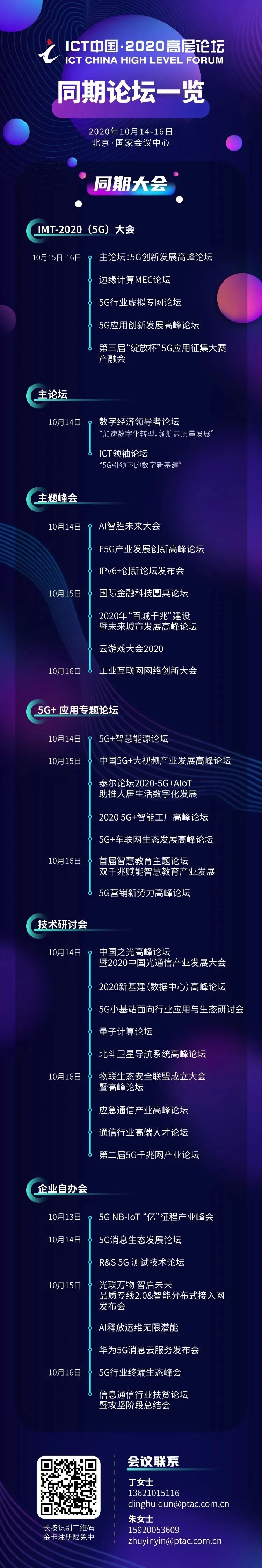ICT中国·2020高层论坛将与PT展同期举行,由2大主论坛、7大主题峰会、7场5G+应用专题论坛、9场技术研讨会、7场企业自办会组成,此外还将同期举办的IMT-2020(5G)大会,伴您畅谈ICT行业热点话题!